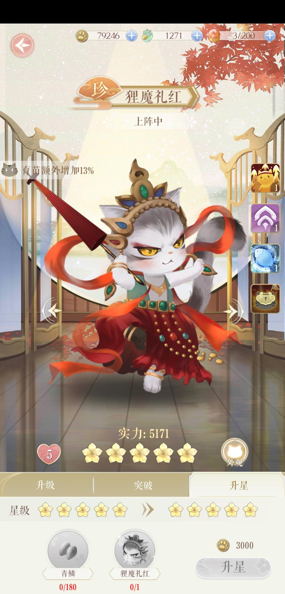 狸霸刀升星了一波,结果其余猫猫都显示为五星了。