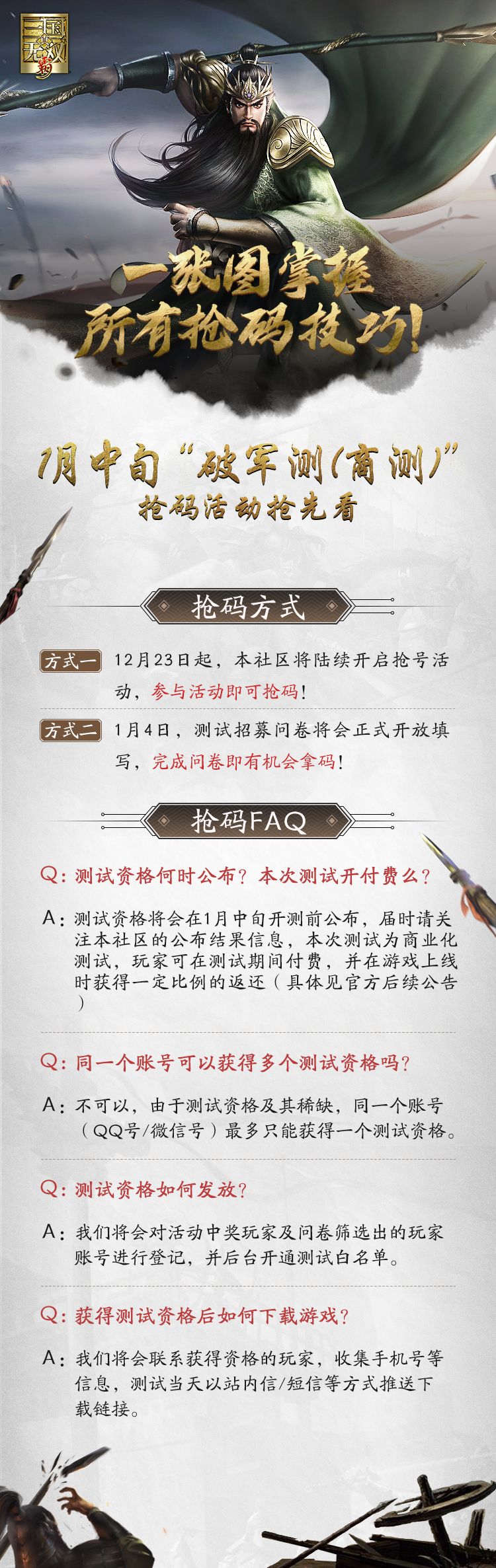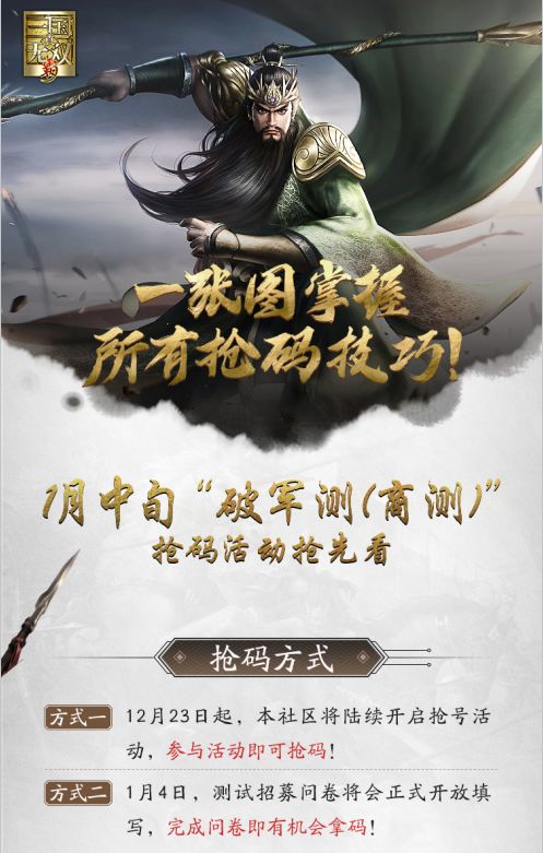 《真・三国无双霸》计费删档测试定档1月中旬,抢码?启动!(已开奖)