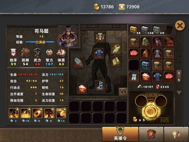 放个司马装备图,第三回合buff最高加到297%+22%,曹操被吸干蓝了,不然还可以加30%的buff,兵书配合洋河鞋,减回复最高170%以上,忘记截图了。其他人全辅助,输出全靠大司马。