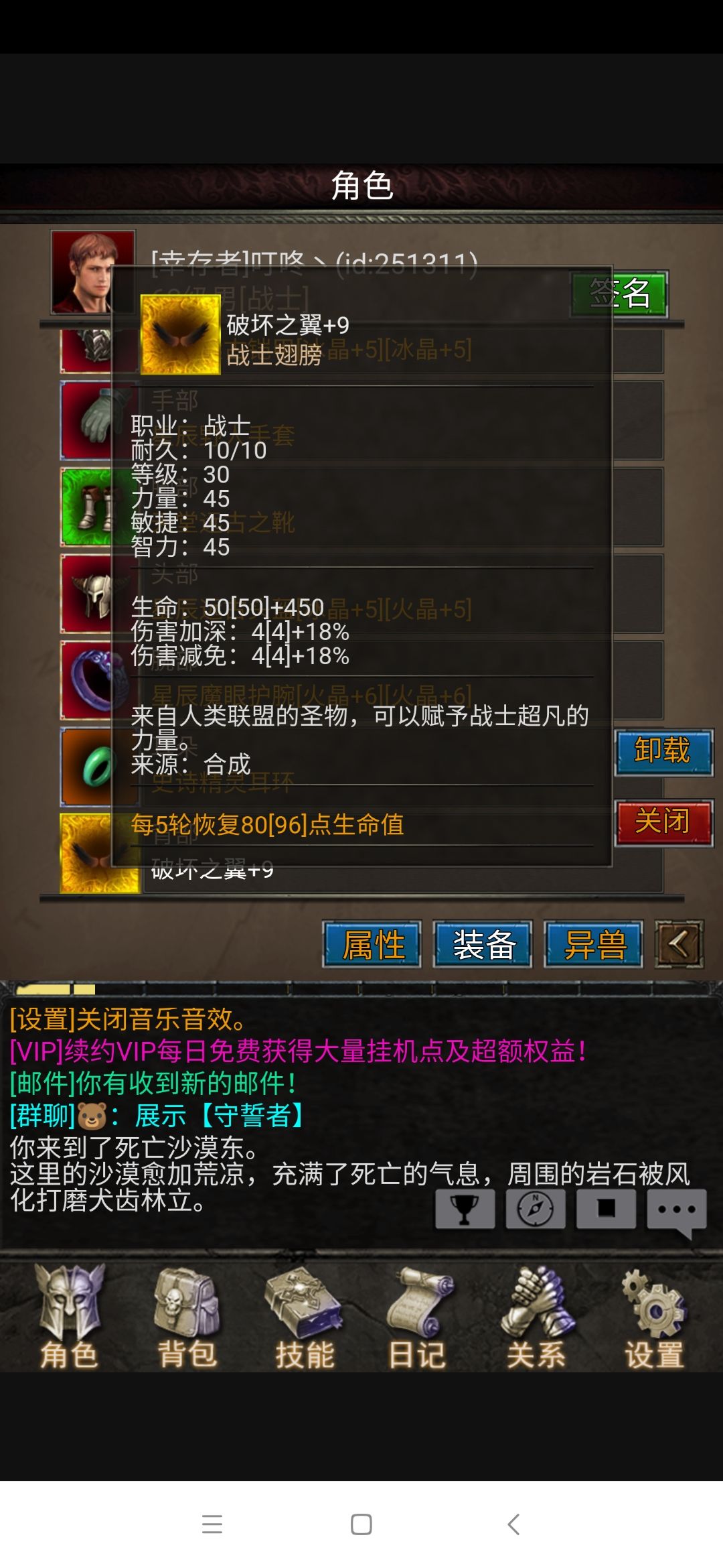 升级翅膀,翅膀最高等级12级,1到6级需要祝福之羽(25级以后小怪爆)升级失败不会降级,7到12级需要幻化之羽(幻境精英和boss爆)升级失败后降一级,建议大家不要急,慢慢来。最好俩翅膀一起升级先升到加9(9到12很难升的)一个升级失败后去升另一个这样成功率高点,脸黑的我也没办法。