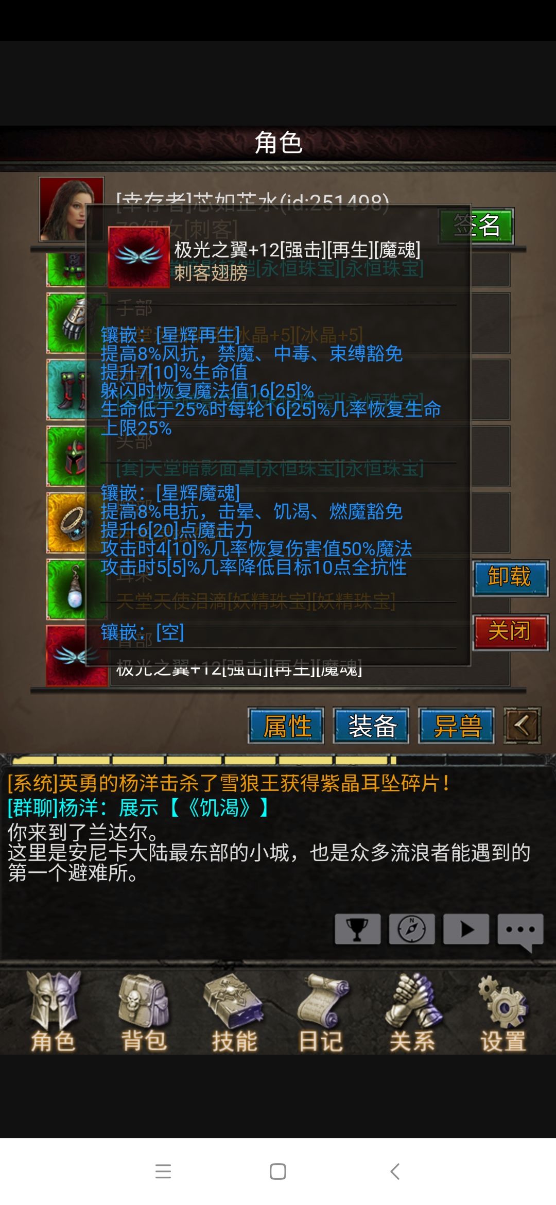 合翅膀要去兰达尔的炼金小屋,需求条件最基本的是珍惜装和创造宝石(25级以后地图和幻境boss爆),装备最多五件最少一件,不建议使用珍惜装合翅膀成功率太低,用两件璀璨合,也可以用一件璀璨四件珍惜的成功率高些(大佬请随意用史诗装合),合出的翅膀基本都是白的,有的人品大爆发合出有回血(每5轮恢复96[96]点生命),回魔(每5轮恢复48[48]点魔力),一击(攻击时12[12]%几率伤害目标7%生命)的,这三种属性只能存在一种。如果是白翅膀想要这三种属性就要去炼金小屋进化翅膀,需要两个翅膀和进化宝石(幻境boss爆),进化出的属性都是随机的,一击的刷boss最实用。