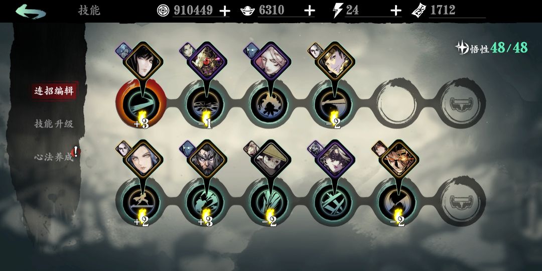 然后心法,魔宝铁蛋蛇眼必须升华1,触发升华羁绊,不然无法复效上面的装备搭配,然后个人认为银月必须有且必须升华2,虽然本测加了40cd,但是在后期普遍高护甲高生命各种霸体的怪面前,考纯技能破甲不现实,一个月报还是重要的。然后还需要将永明之志这个心法升华2,这个心法我从三测起就很喜欢,破甲能力虽不及银月秒破,但也非常可观。在削弱了银月后,如何在40秒真空期进行破甲成了问题,这个心法很有效的弥补了这个问题,即便有20cd但正好和银月互补很舒服。最后培养尽可能多的紫的带攻击磁条的武学心法配合龙套程面板。升不升华紫攻击心法看资源和心情。建议不升华但都培养到60用来倒换打劫景。