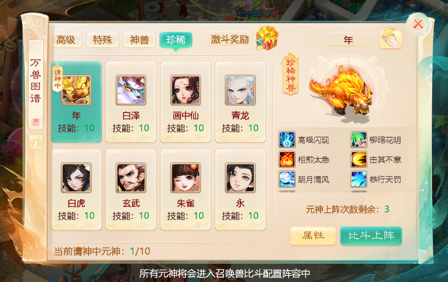 58种珍稀神兽、神兽等召唤兽元神任君选择,神兽个个都能用,人人都能用!