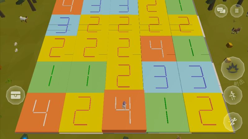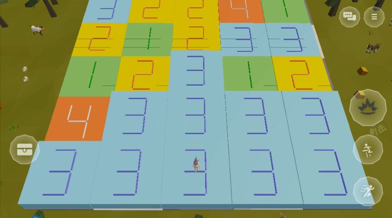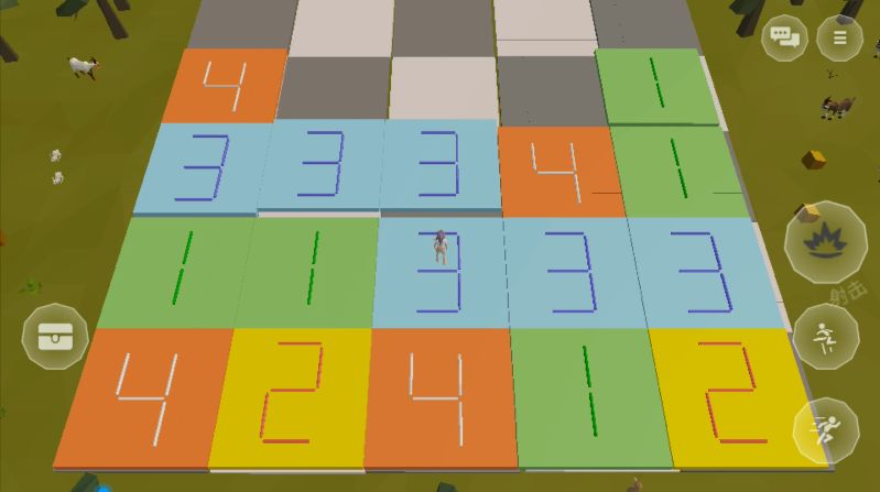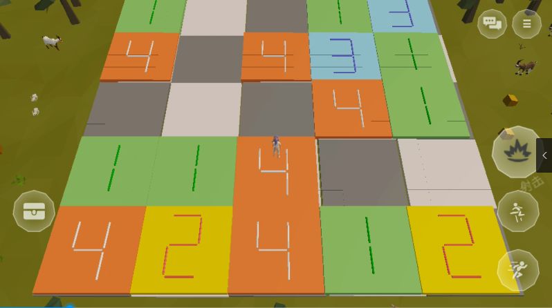 游戏开始后,岛友们就可以看到一个代表自己的小人出现在众多标注了不同数字的方块上,人物站在哪一块方块之上,同数字且相邻的方块就会串联显示凸起。