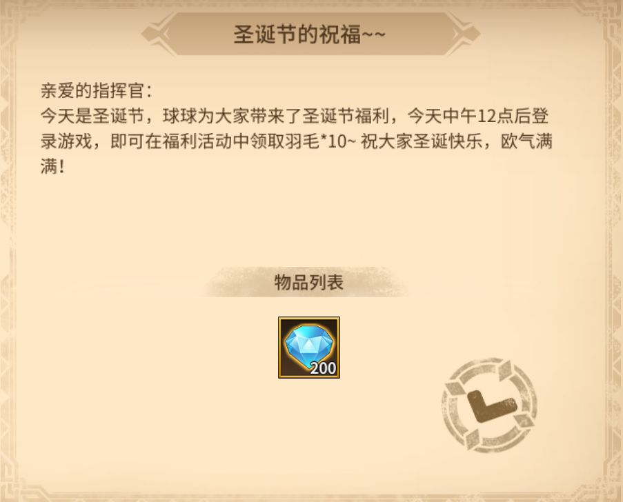 圣诞节到啦,三七先生苦苦求来的福利也将在12点后为指挥官们放送!