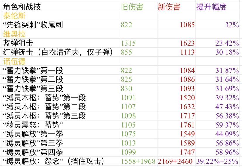 这次伤害提升不少(见下面的伤害调整表格),终于解决了诺伍德伤害不足以弥补机动性劣势的问题。