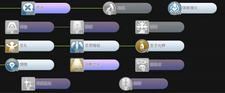 灵巧(D):每3点灵巧减少0.1秒的咏唱,点到没有BUFF的情况下可以直接不需要咏唱放出圣灵降临(如果怕麻烦可以直接加满)