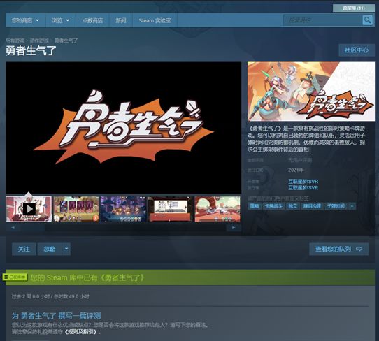 号外,号外!《勇者》暂时不生气了,很高兴!为什么呢?因为我们终于有了自己的steam页面!