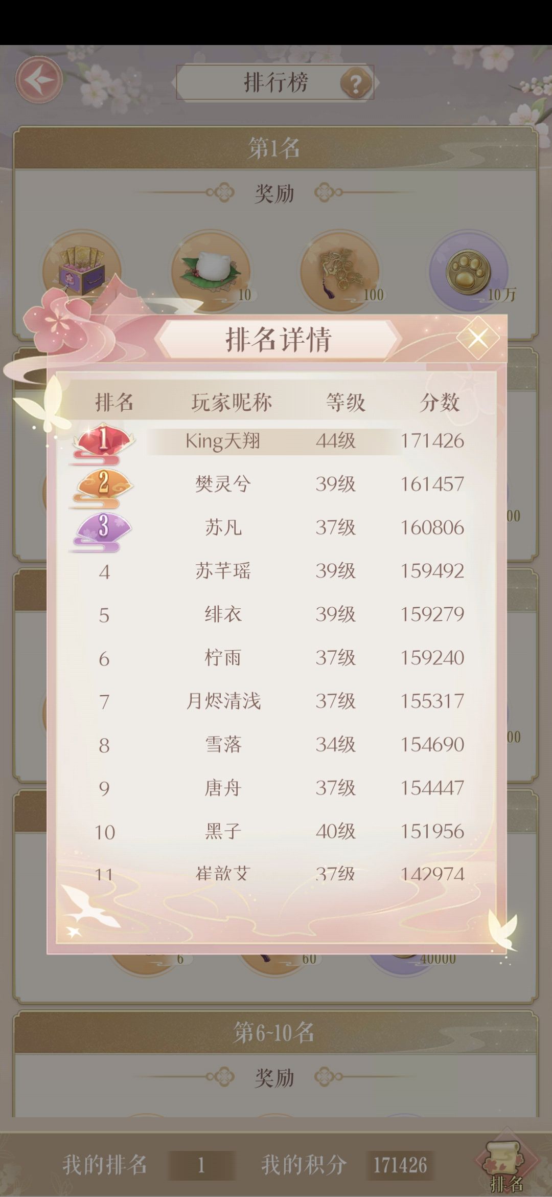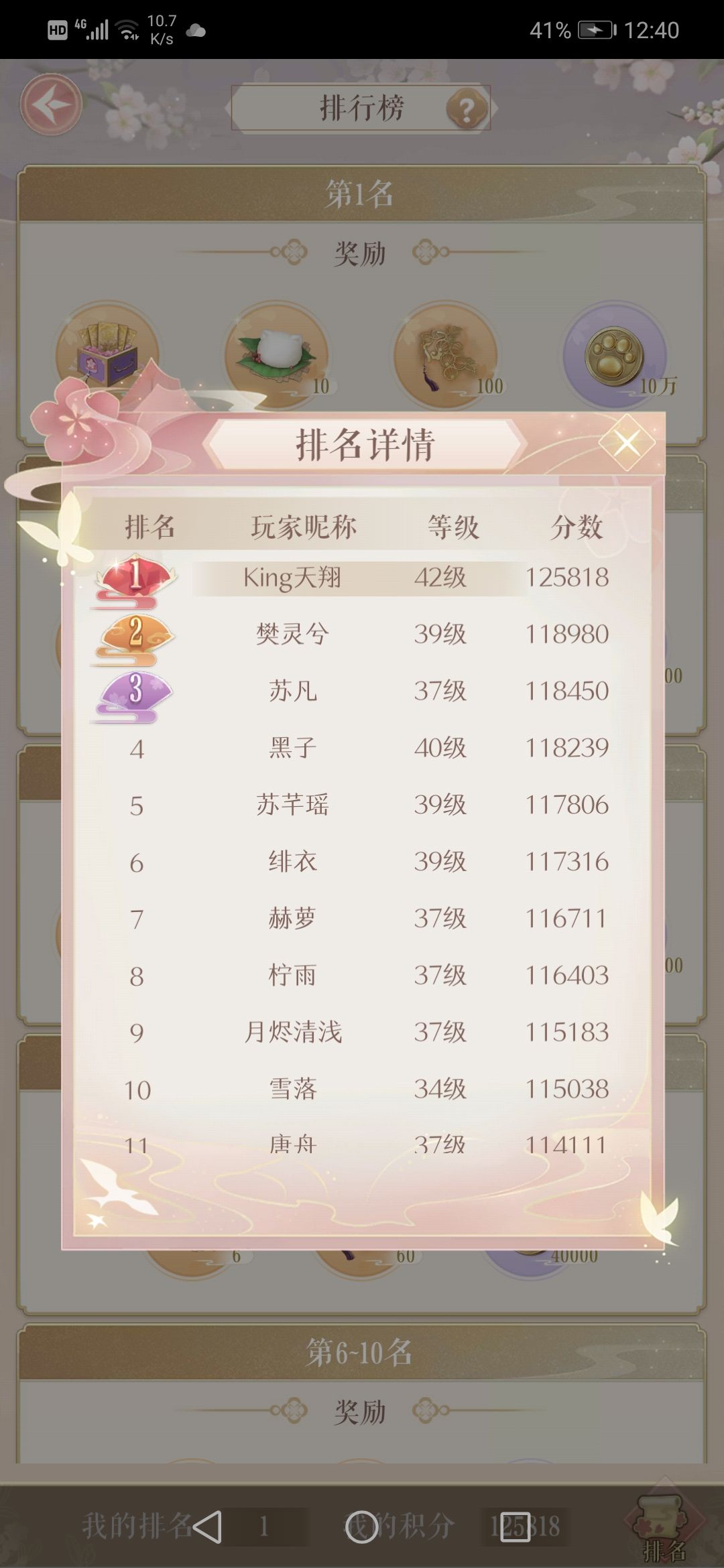 排行榜分别是第一二三四天四十次结束后的记录,第一天狸魔礼红没拿到,第二天拿到了,第三天突破四十级生了一波猫,第四天突破四十四,开了八号位。