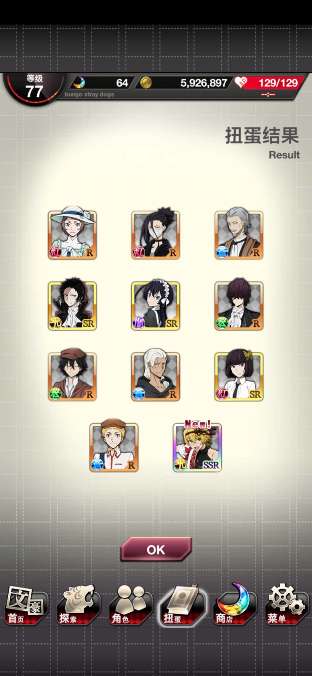 三发抽出来了贤治,毒是真的毒,三发就这么一个ssr,还是必得的,没歪真好,直接收手了