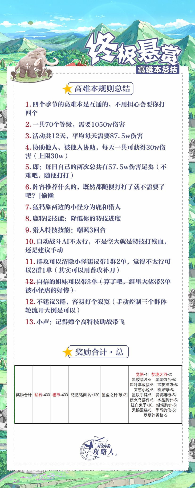 四季猎场高难本建议与奖励汇总