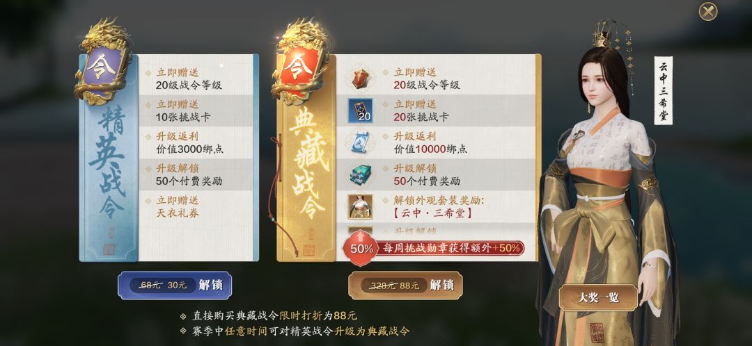 上图为天涯战令的三个档次的奖励对比,在这里推荐大家解锁典藏奖励。