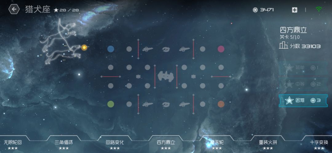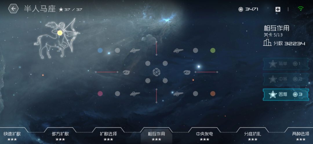 图中扩散连锁,开局每个扩散上均有10飞船。
