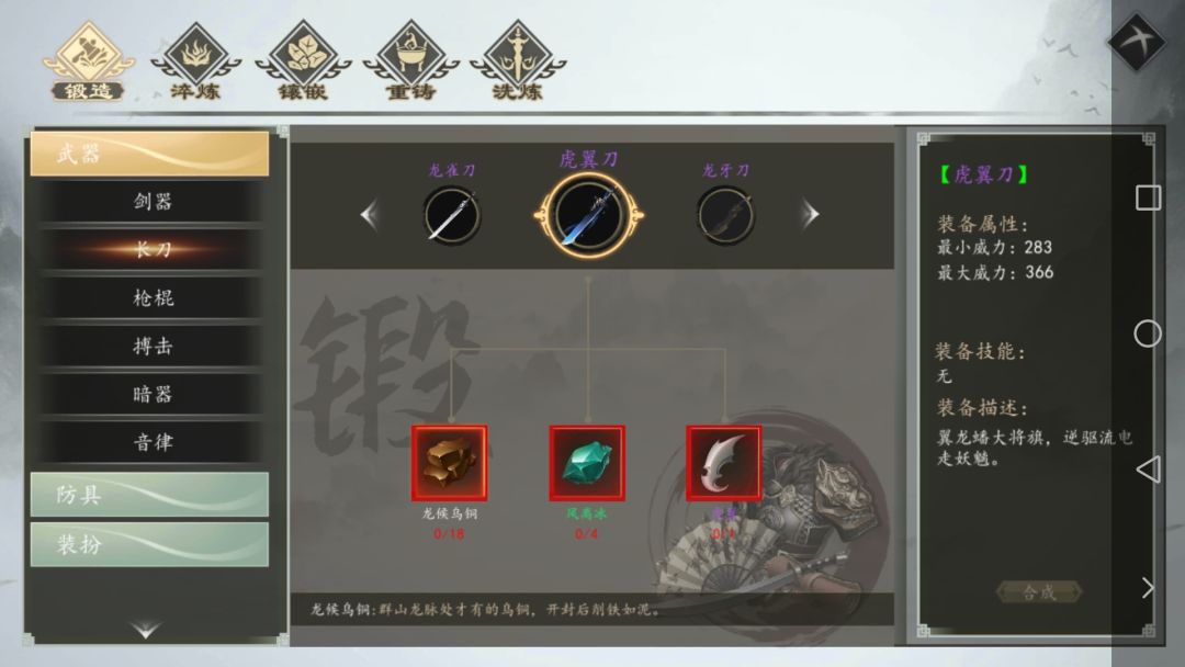 打造装备时看不清紫色材料,建议点击材料后显示材料说明或更换锻造页面的背景图