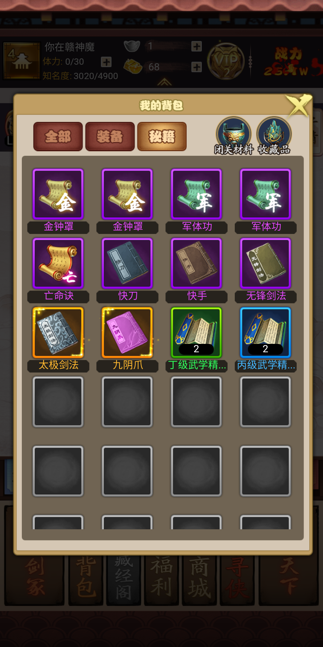 刚玩四天 听说秘籍和功法一换就没了 不能脱下来 所以不敢乱用