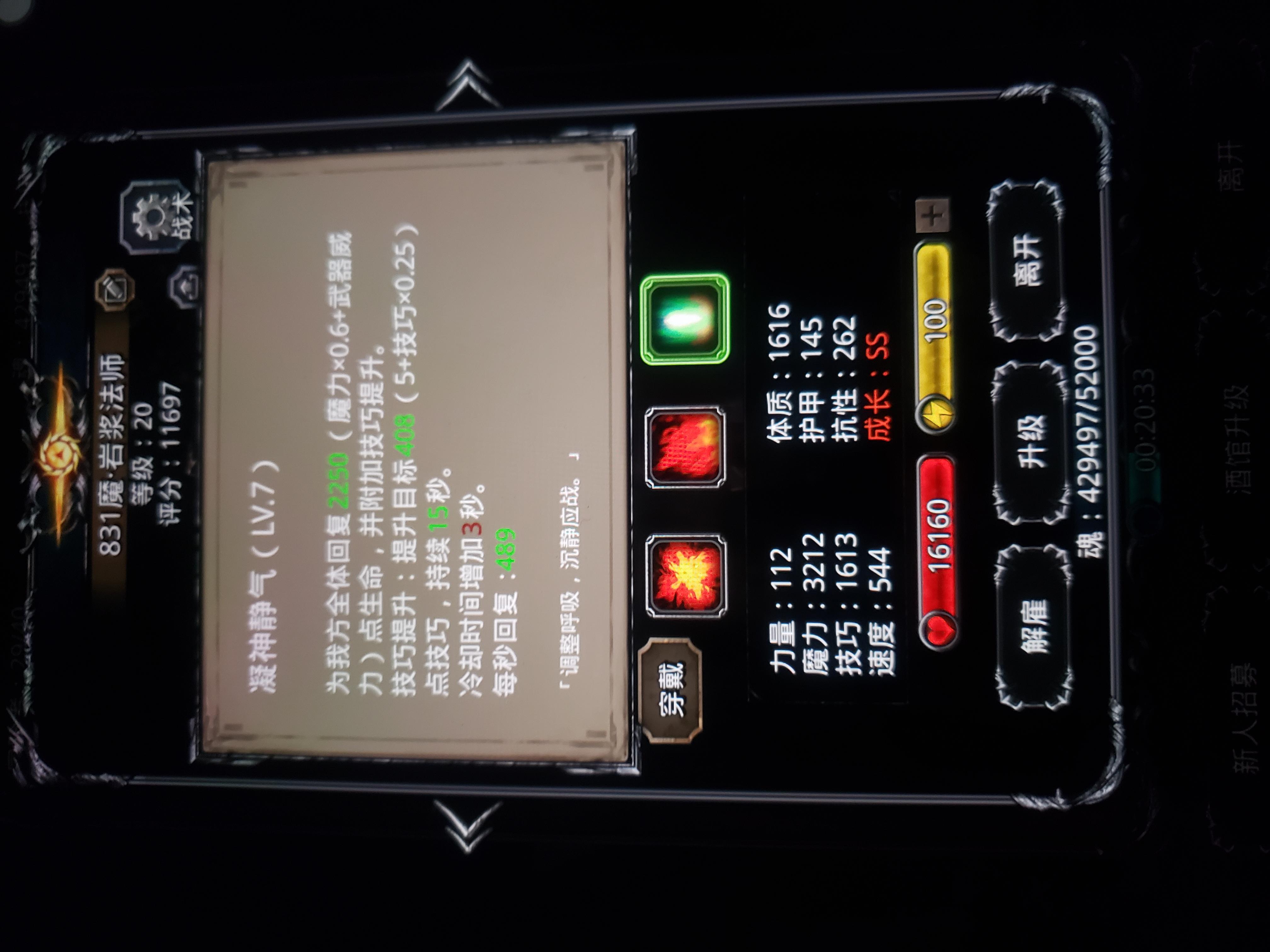 战利品魔7.5技7.5+体质13.6,用影兽面具是为了防减速,虽然没啥用,但是加了很多抗性