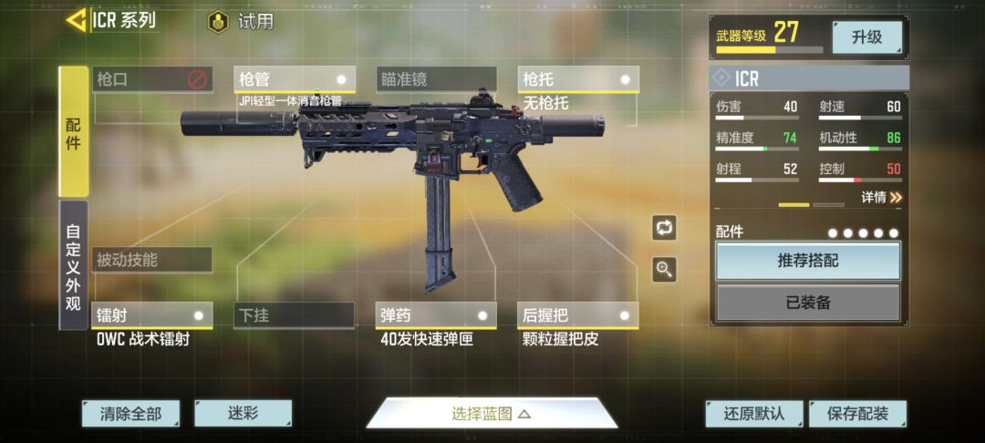 1.首推ICR:高机动性、高稳定性,全中3-4枪死的伤害,从萌新到大佬都适用。下面推荐两套配装: