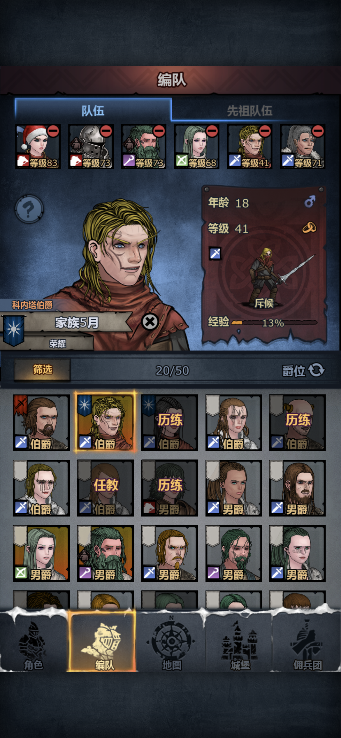 4.看到有说商会尊敬的,我理解就是一直跑商到尊敬,可是一直跑商别说士气低迷了,就是队里的人也会老死啊,回头都没人战斗了怎么办?一看到队伍过了50岁就焦灼啊,现在有小公主,随时可以拉一队,回头小公主没了就不知道咋弄了,感觉玩玩就得练一队。