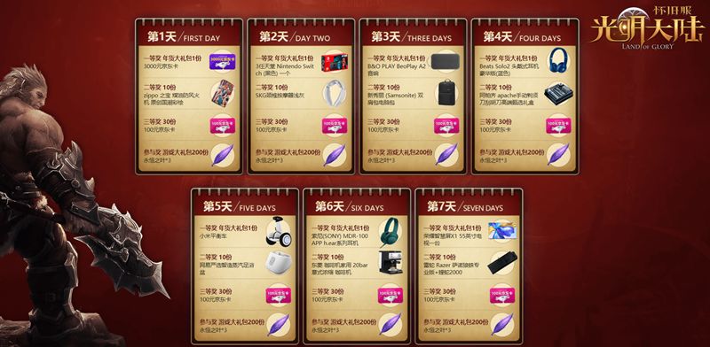 在整个开荒盛典中,每日都将固定送出200份游戏大礼包,内含3枚永恒之叶;另有30份三等奖,奖品为价值100元的京东卡。
