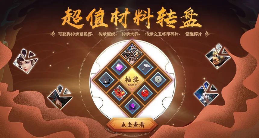 活动内容:传承夏侯惇、传承庞统、传承大乔、传承文丑将印/觉醒碎片自选