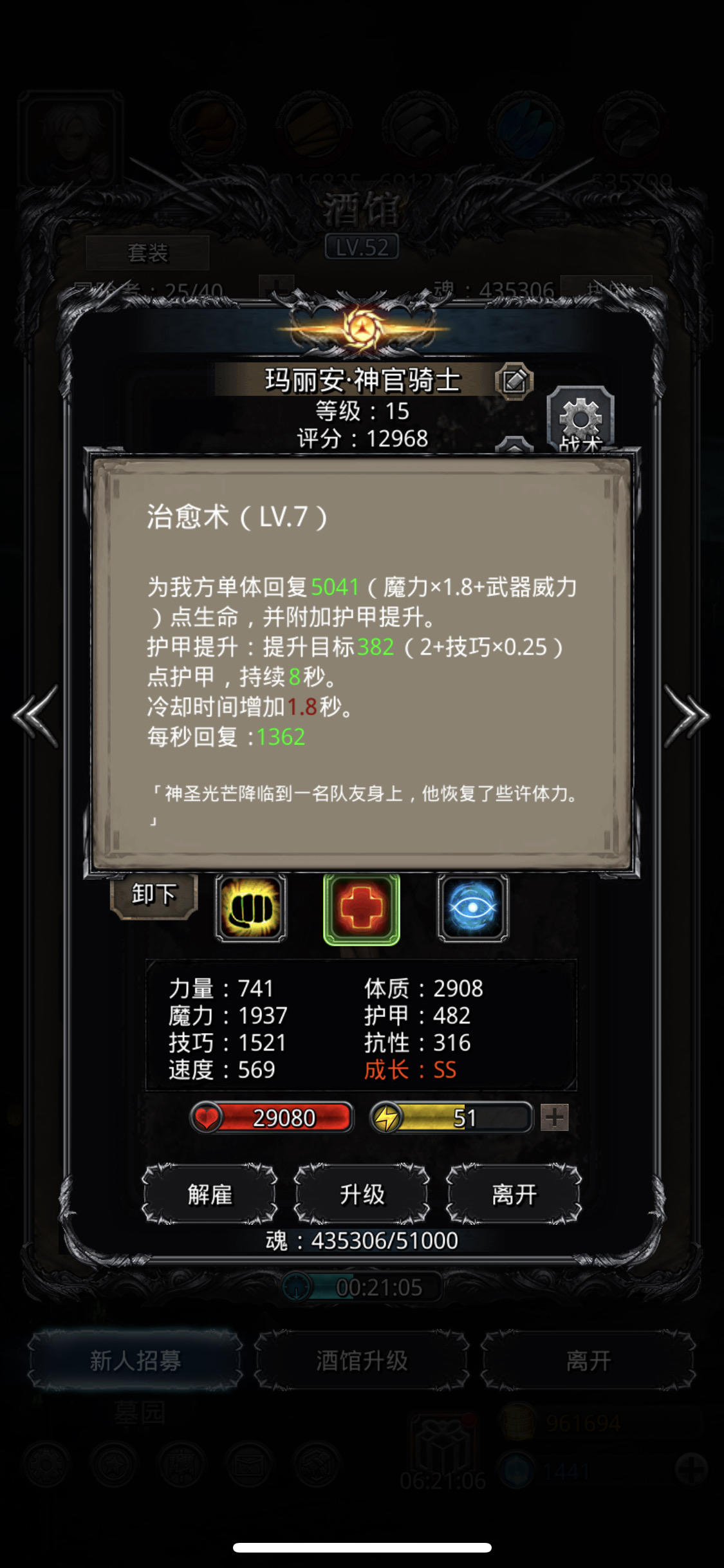 神官:护甲,带800甲的神官,无敌,勉强可以奶3波,全程手动,开局先奶一口火法,一定要保证在boss攻击时,火法带护甲效果,不然百分百翻车。