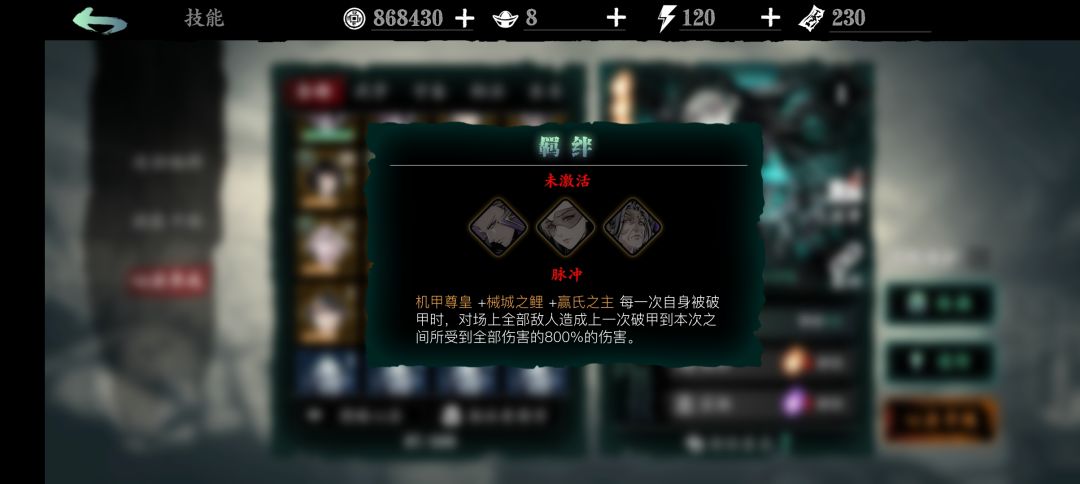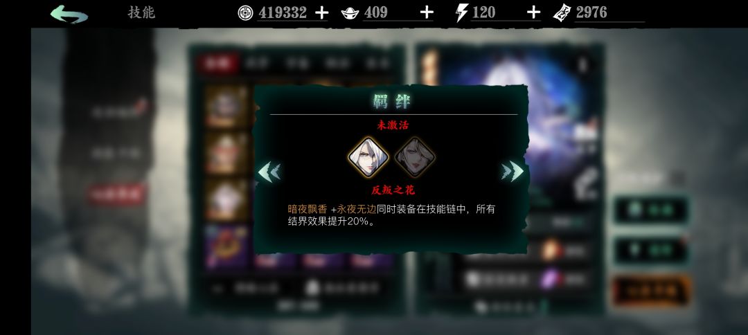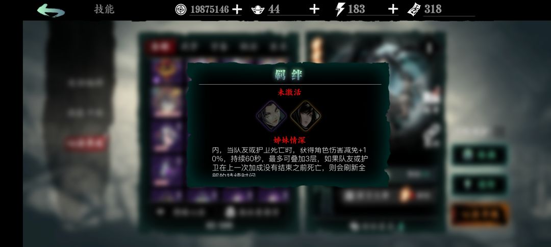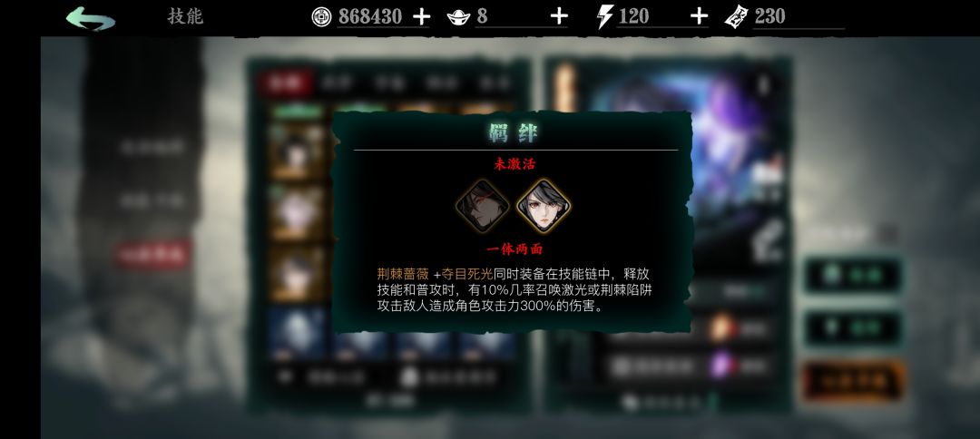 光与暗(俗称黑白羁绊):由黑暗无情与白衣留情组成,升华后全伤+150%,前期在装备上所投入资源不多时必带他,因所堆词条不多,初始带他伤害非常可观,免去刮痧烦恼,对萌新来说可以算是t0级别的;后期随着所走流派与所堆词条的不同,再加上悟性的限制,黑白羁绊也就显得可有可无了。