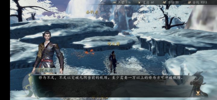 拿到九阴后,必须将九阴心法升级直到不能再升,直接去雪山鱼塘,才会提示“需要一万以上修为”,带上一万修为,泡个澡,就解锁了。