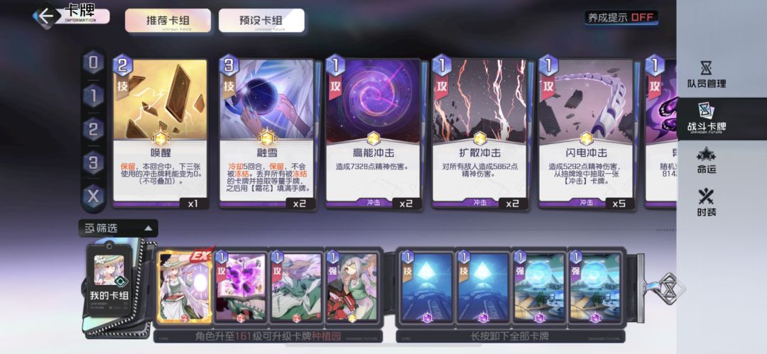 2、台丝带两个电震,两个春风,连续2个电震冰冻春风能加2次血加一个大,能抵消3层debuff,专属1费给诺加攻击