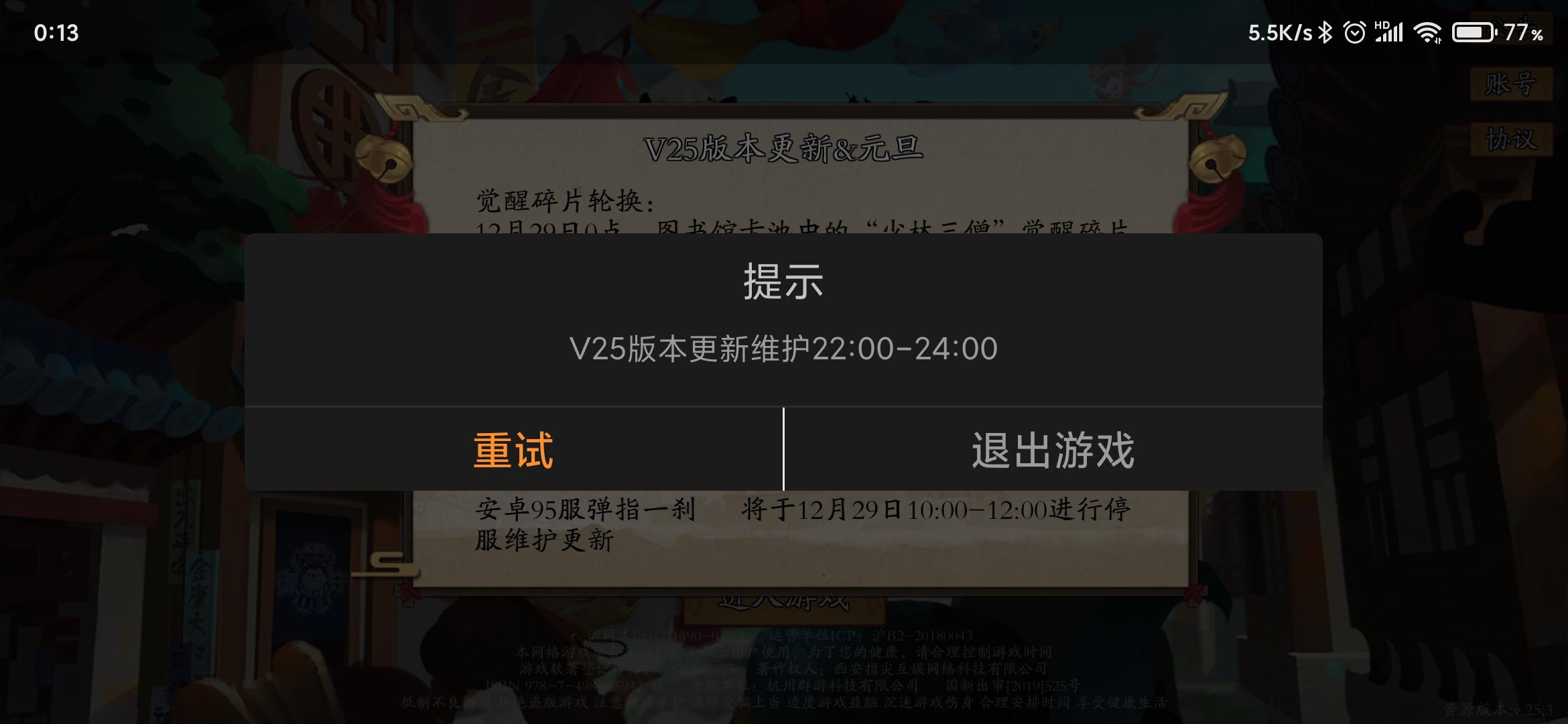 说好的到24点,结果过了2分钟才能更新,上线才打一会儿又掉了