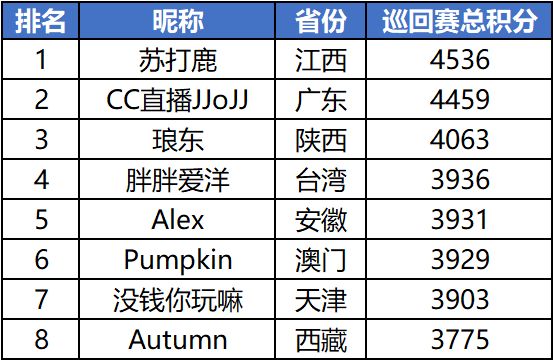 以上就是前8名的成绩公示情况,如果您对巡回赛战绩有任何疑问的话,也欢迎通过官方渠道联系我们,我们会尽快与您取得联系,同时也希望大家能够继续积极参与巡回赛相关赛事,6亿金币等你来拿!