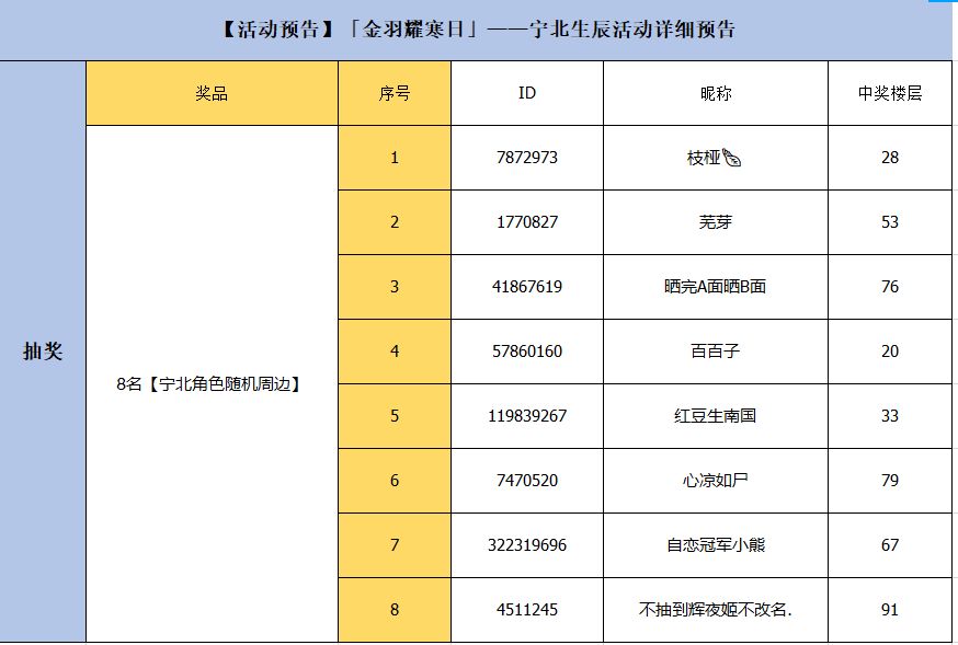 (已开奖)【活动预告】「金羽耀寒日」——宁北生辰活动详细预告