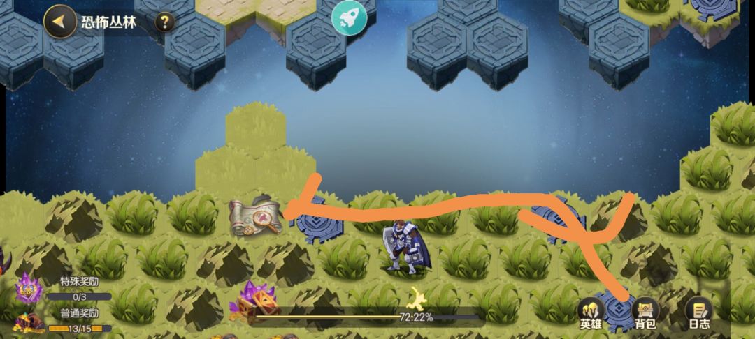 手机截屏画的,有点粗糙,但是不影响食用,如图中路线打完图上boss,然后原路返回搞掉中间boss,右边的就随意走了。一个格子一个格子试出来的,只为混点👍👍