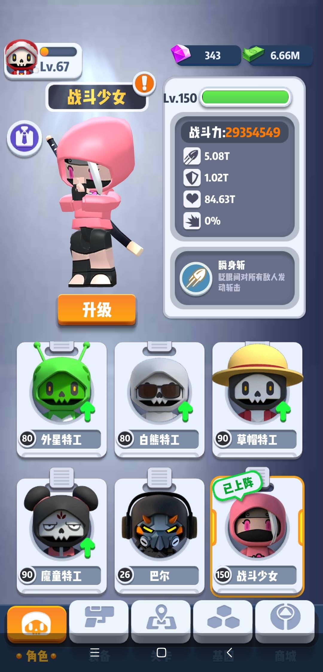 我想应该没有其他角色比战斗少女更容易升满了,就是太肝了点(精英模式只能手动打,不能挂机)。