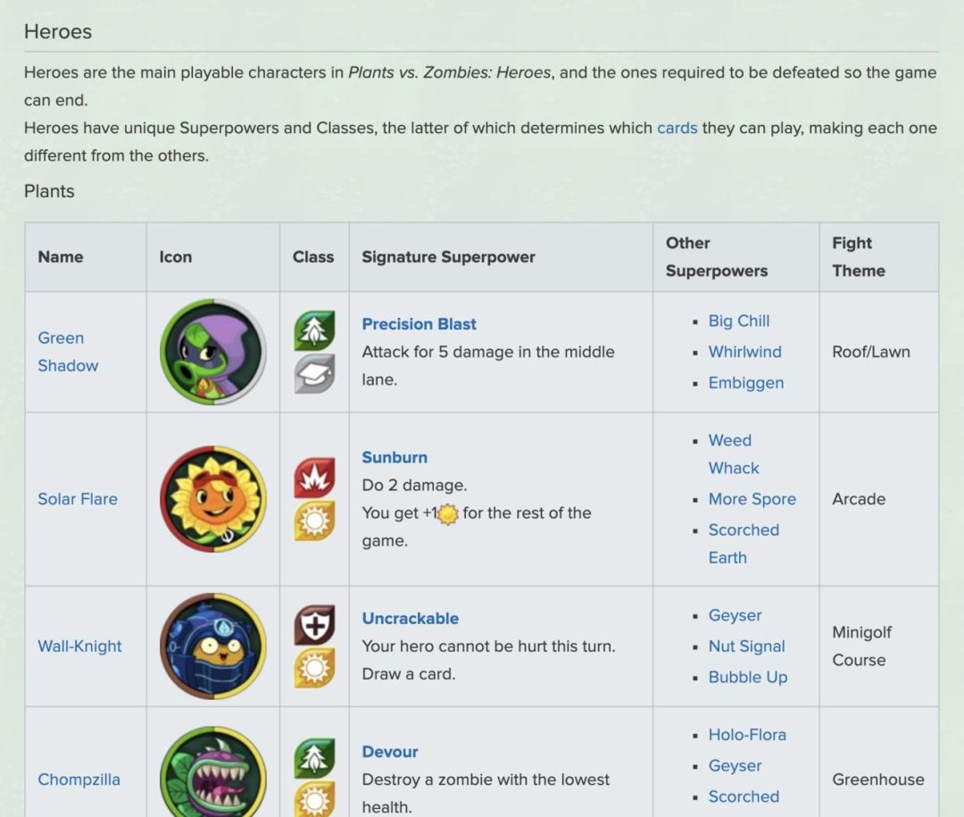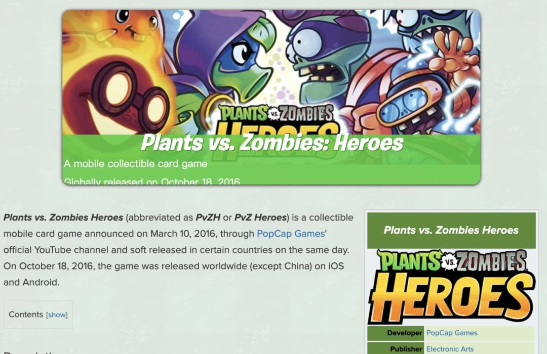 目前更新及时的有 fandom 的pvz版:https://plantsvszombies.fandom.com/wiki/Plants_vs._Zombies_Heroes