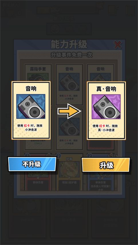 在这次测试之前,我们的广告版本我们一直没有设计卡牌升级,当然也没有卡牌升级的事件。卡牌升级事件是在上测试前2天开发完成的,当时我们内部体验也是觉得这个事件弹出来一定要看广告特别突兀,体验特别差。当时我们也跟身边朋友说“来试试我们新版本,看看是不是广告点太多了,我们怕玩家们会很反感”。但过2天就要测试必须提前封版本,没有一周时间基本改不过来,所以我们能做的只是在开发者的话中求生欲满满地提醒“广告极多”。