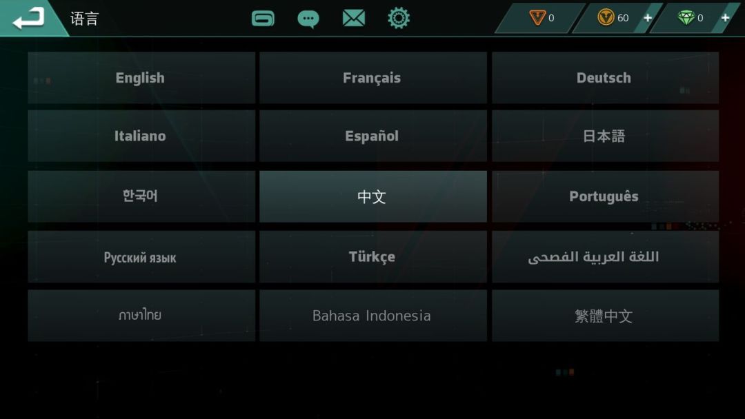 国际服自带中文,简体中文,自动识别,如果万一显示的是英文,可以在游戏内设置菜单(齿轮)里面找language,然后选简体中文,手动调回来。