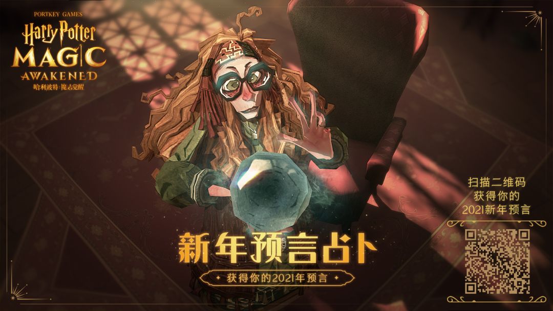 新年即将来临,占卜课教室里,兴奋的学生们正端坐在圆桌周围。倾听特里劳尼教授讲解水晶球占卜的神秘与魅力。想知道你的新年预言是什么吗?
