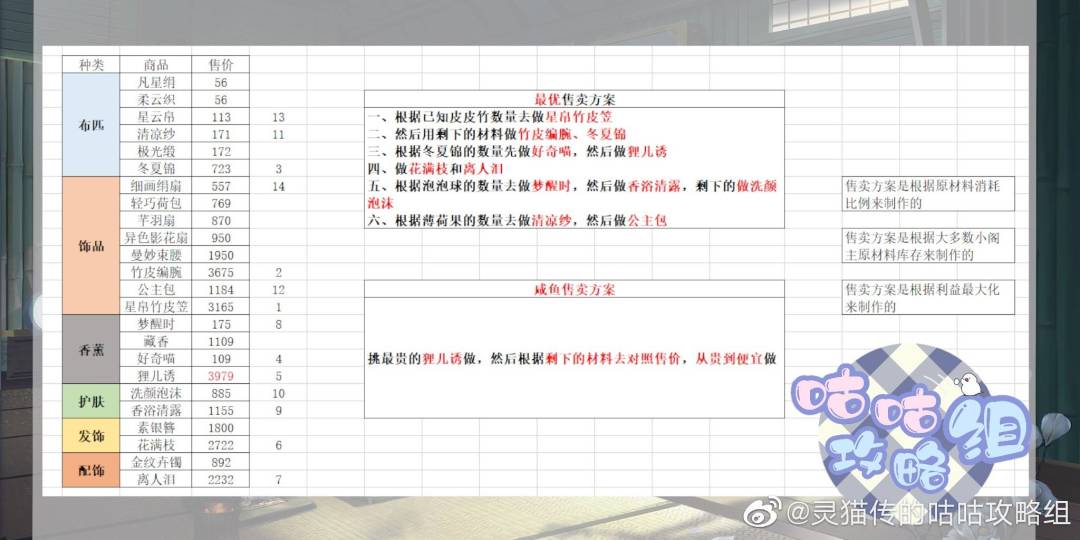 ❗ 图一是原材料数据,图二是货物配方和利润表,图三是贩卖方案和顺序