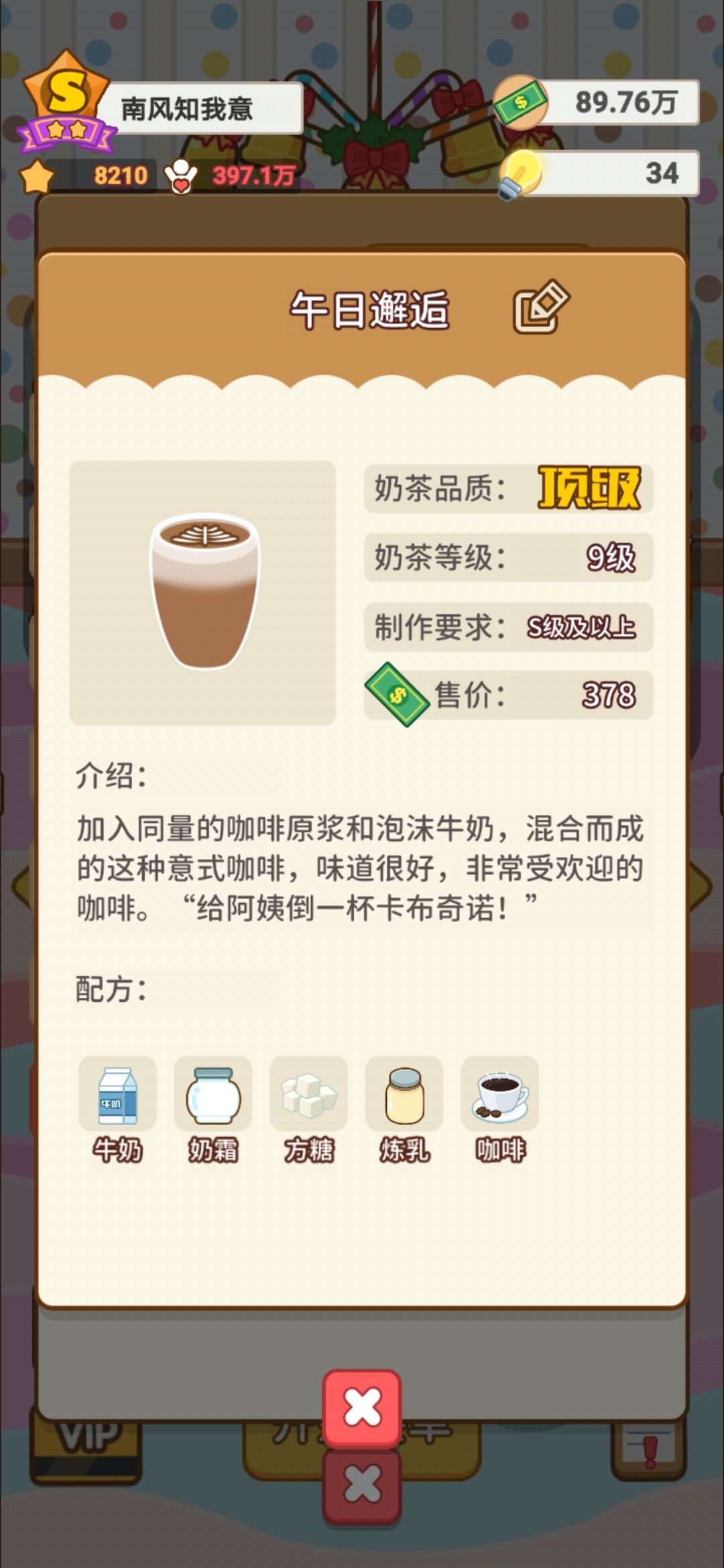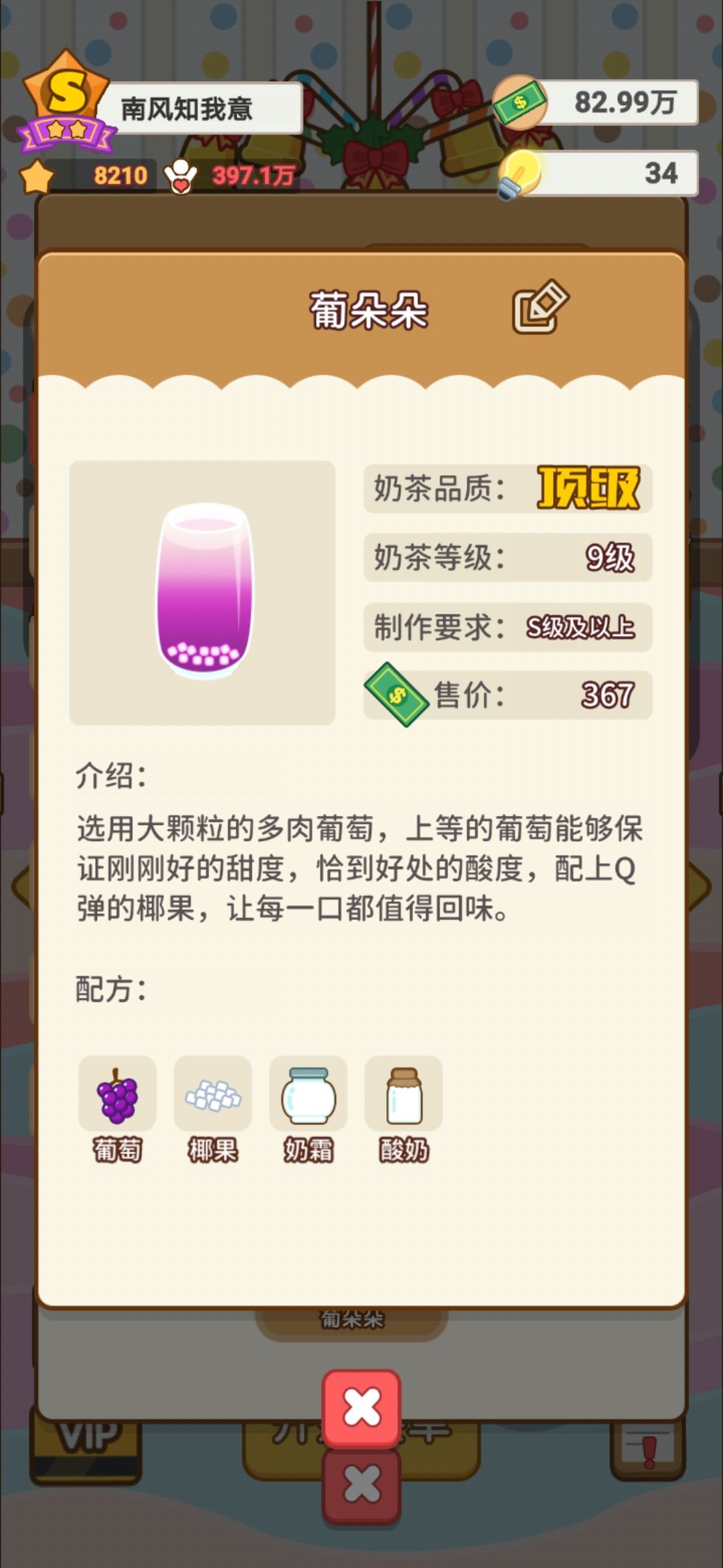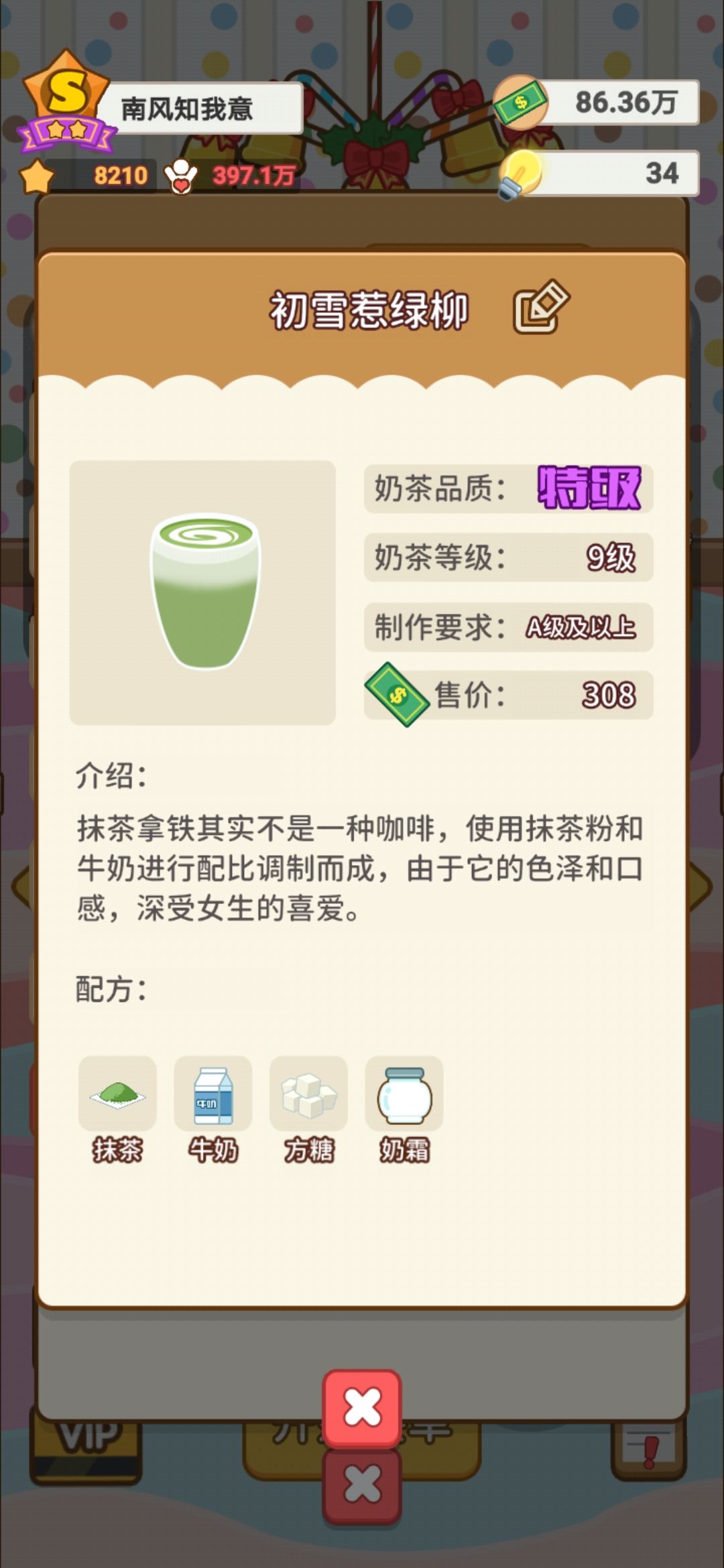 7.最后!奶茶现在真的太难升级啦!部分材料数值降低,而升级条又扩充了😟
