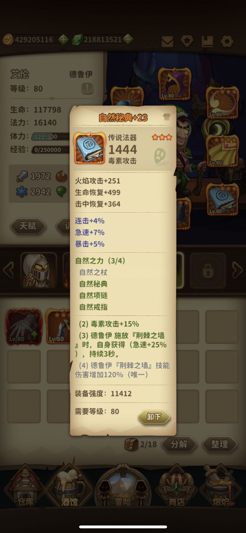 全装备基础急速43%,自然套提供25%,加上我给大家配的手和武器的25%,高达93%,当然85%是满的。
