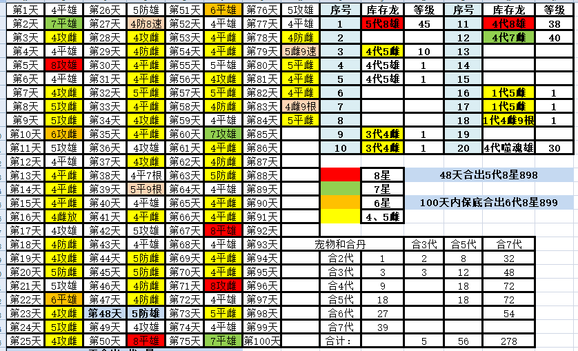 龙蛋开的还是很顺利的,妖丹差10天左右可以合出6代,4代的7+8和5代的8+8会不会暴击出9就听天命了