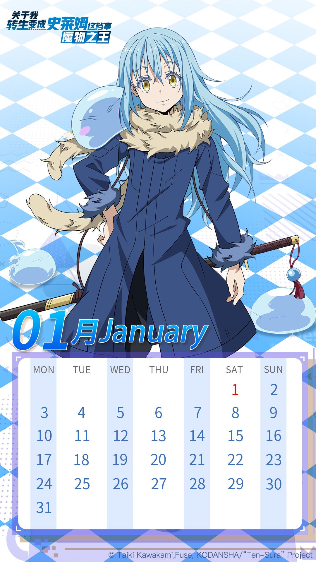 利姆鲁1月日历,横版竖版都有,各位自取啦~