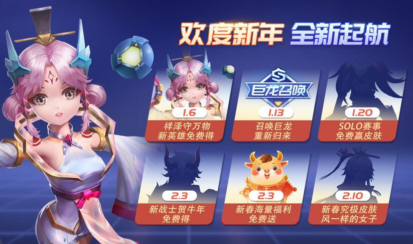 1月6日-2月2日 战斗手册完成任务达指定等级可免费兑换新英雄白泽和白泽头像;史诗自选皮肤,豪华进阶版得。