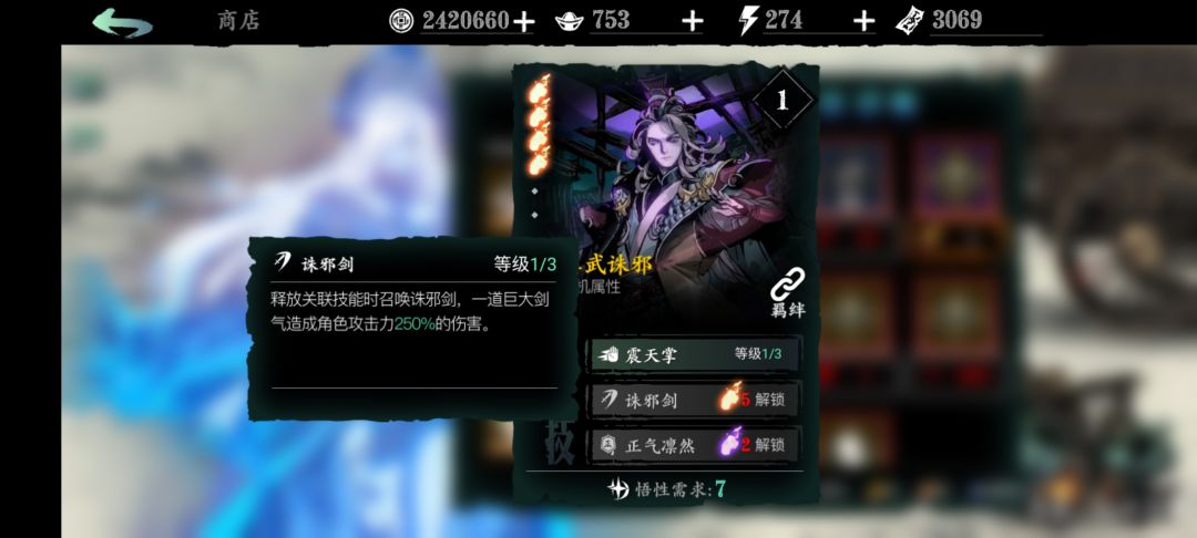 真武诛邪: 1绝技增加角色基础面板的暴击率;2绝技辅助输出;3绝技给2绝技增伤。可与堕落神医构成t4级别羁绊医剑羁绊。
