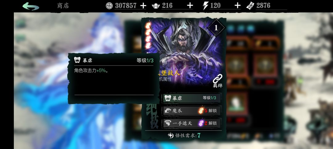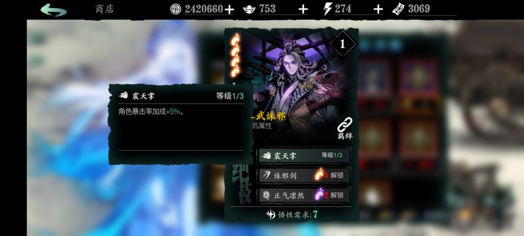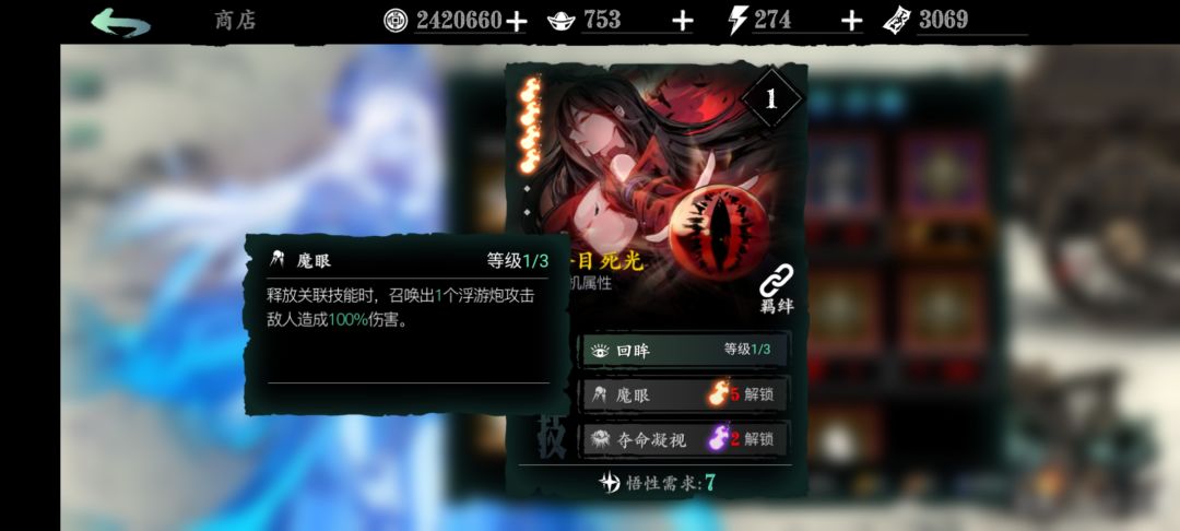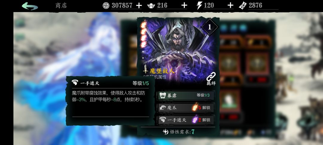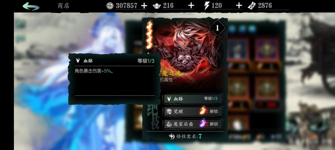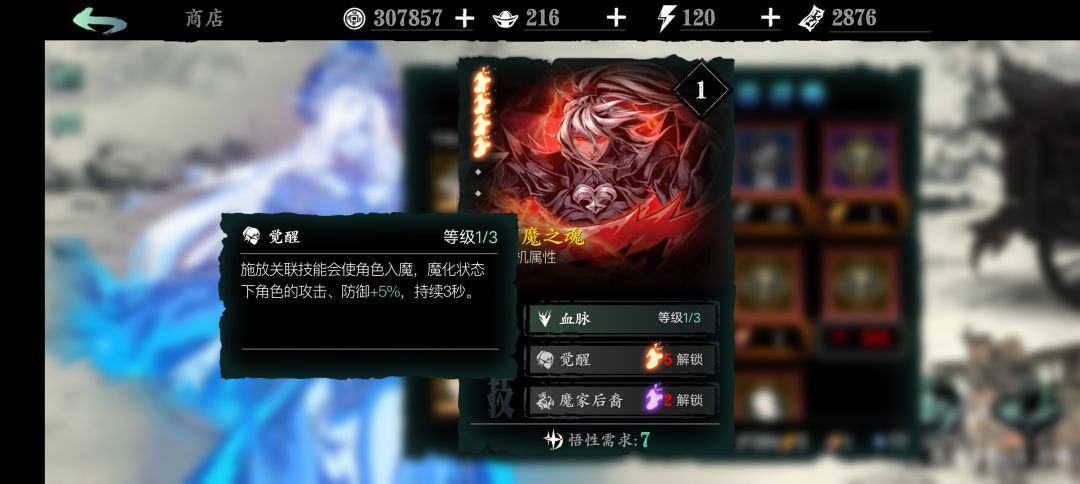 万魔之魂:1绝技增加角色基础面板的暴伤,非常强力;2绝技的增伤增防buff也非常可观;3绝技免控,前期用到后期的神技。