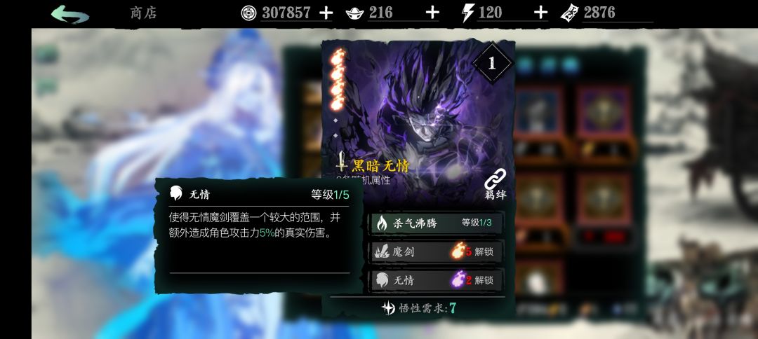 黑暗无情:1绝技增加角色基础暴击面板,2、3绝技辅助输出,可与白衣留情搭配构成t1级别的黑白羁绊,不过这个羁绊效果后期作用不大。