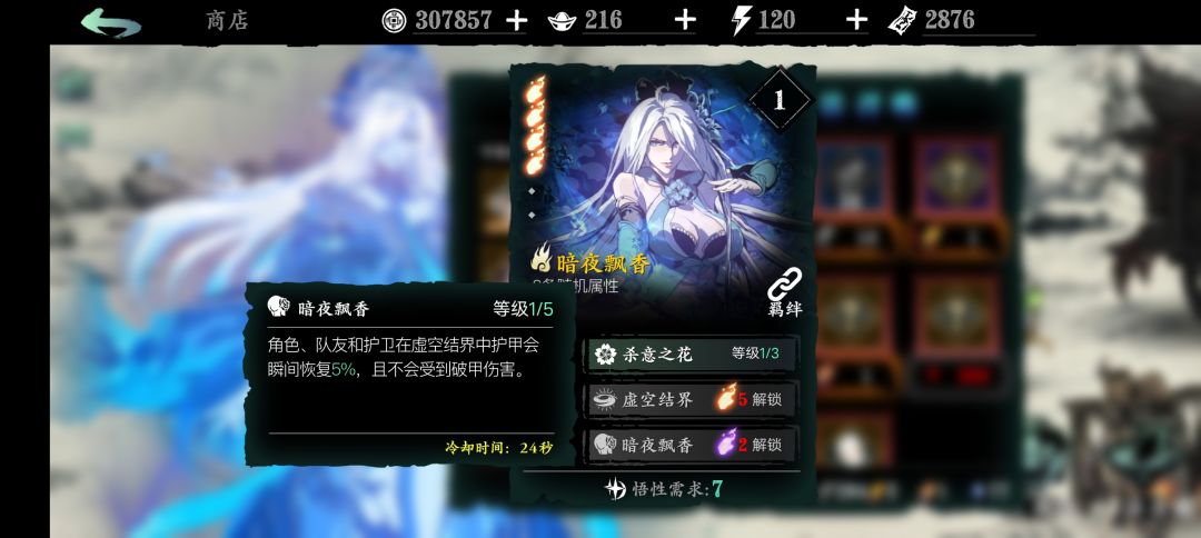 暗夜飘香:1绝技增加杀意,前期非常实用;2绝技为增伤增防buff,较为实用;3绝技回甲+免破甲;可与芳华邪后构成t1级别的暗芳羁绊。