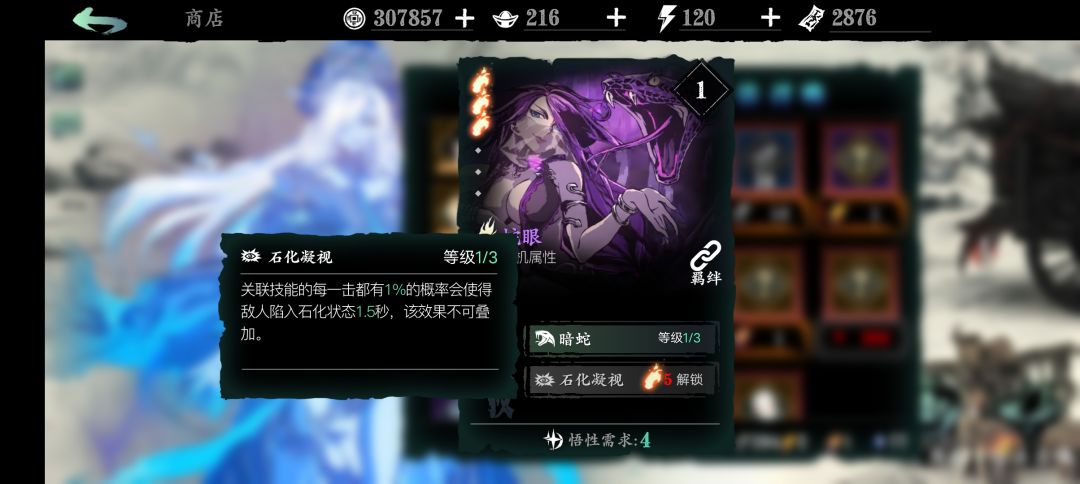 蛇眼:1绝技辅助输出;2绝技概率石化,前期到后期都很好用,紫色心法容易养成;能和魔堡搭配构成t0级别的魔堡羁绊。