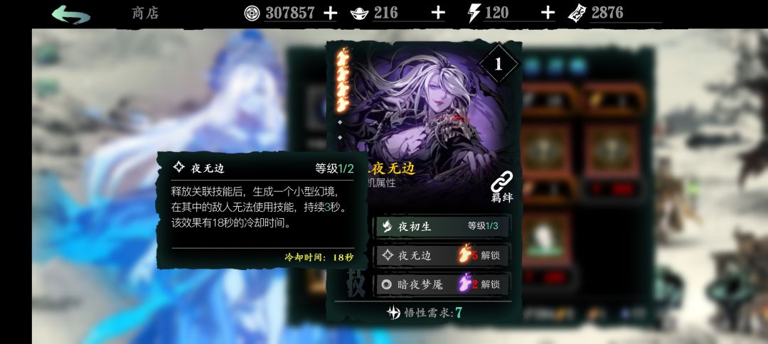 永夜无边:1绝技增加杀意,装备中散搭杀意流套装的话很实用,前中期杀意不足用这个也很好;2绝技让敌人在一定时间内无法使用任何技能,冷却时间也短,可频繁使用,非常强力,pvp和极致伤害流的pve胜负都在瞬秒间;3绝技可以用来在技能空档期闪避保一波命,辅助输出。