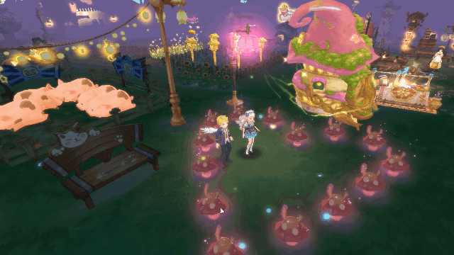 为了营造浪漫的跨年气氛,阿狸了布置一些漂亮的勿忘我、蒲公英,以及鲜花路灯、彩灯挂饰。家园小道旁的两排彩灯挂饰,到了夜晚便会闪烁光芒,照亮小伙伴们游玩的道路。